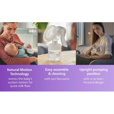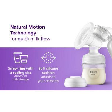 - Natural Motion technology combines suction and nipple stimulation for quick milk flow