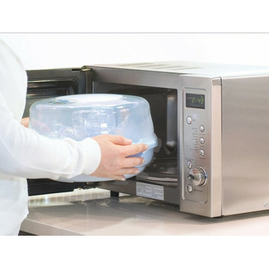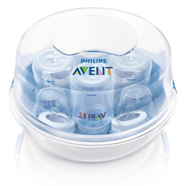 Safety clips keep the lid securely closed and side grips stay cooler for safe handling. At full capacity, the sterilizer holds up to 4-9 ounce or 2-11 ounce Philips AVENT Anti-Colic or Natural bottles. Its interior rack can also support 2 Philips AVENT Breast Pumps (non-electrical components only) and up to 4 breast milk storage cups and lids. You can also use it to sterilize pacifiers, non-metal utensils, and other microwave-safe baby items. Measuring 6.5 inches by 11 inches, the sterilizer fits in most microwave ovens, and is BPA free.