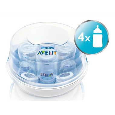 Philips AVENT Express Microwave Steam Sterilizer SCF281/05 protects your baby from harmful bacteria, operating at a higher temperature than dishwashers. Sterilizing up to 4 Natural or Anti-Colic Bottles at a time, it kills 99.9% of harmful germs. This lightweight, compact sterilizer is the perfect size for traveling. Stay-cool safety grips allow for safe handling and make it easy to sterilize breast pumps, bottles, cups and more while at home or traveling. The Microwave Steam Sterilizer uses the power of your microwave to create natural steam. Just add water and place in the microwave for 2 minutes.
