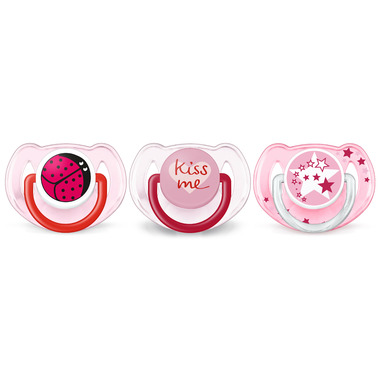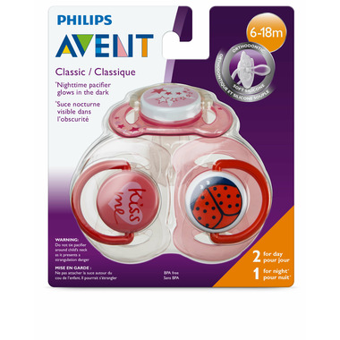 These fun pacifiers feature Philips Avent's orthodontic, collapsible and symmetrical nipples. These nipples respect the natural development of baby's palate, teeth and gums. All Philips Avent pacifiers are made of silicone and are taste and odour-free.