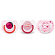 2 daytime pacifiers + 1 nighttime pacifier (with a glow-in-the-dark handle)