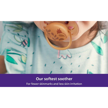 The Philips Avent Ultra Soft pacifier for babies 6-18 months is designed with a soft and flexible shield for fewer skin marks and less skin irritation. This makes it a more comfortable choice for your baby's delicate skin. 98% of babies accept the soft silicone pacifier nipple. It comes with 2 pacifiers packaged in a sterilizer / carrying case that can be used to sterilize them with water in the microwave. The sterilizer / carrying cases can be used to sterilize the pacifiers with water in the microwave and transport or store them hygienically. Made of BPA free material.