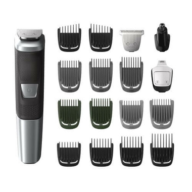 Craft your own personal look with this versatile trimmer, which includes 18 quality tools for styling your face, head and body. Its DualCut blades deliver maximum precision and the no-slip rubber grip improves comfort and control.