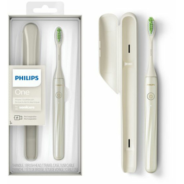 Includes: 1 Philips One by Sonicare Rechargeable Toothbrush and matching brush head, 1 travel case & USB cable.