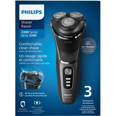 Comfortable, clean shave. Even on sensitive skin with SkinProtect Technology. Philips Shaver 3000 Series Wet & Dry Electric Shaver gives you a comfortable, clean shave, even on sensitive skin. 5D Pivot & Flex Heads, 27 self-sharpening PowerCut Blades, and wet and dry use ensure excellent, reliable results every time.