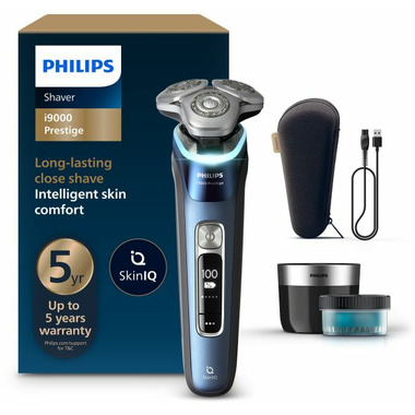 Philips i9000 Prestige, with Triple Action Lift & Cut shaving system and 360 Precision Flexing compact head cuts hair at 0.00mm skin-level, even on dense beard. Powered by AI, SkinIQ senses, guides and adapts for intelligent skin comfort.