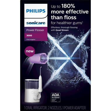 Discover the power of X! The new Philips Sonicare Power Flosser creates an X-shaped stream of water that reaches deep between teeth for a gentle, thorough clean. This X-shaped water stream, known as Quad-Stream technology, covers more surface area for a faster, deeper clean versus manual floss. Because of Quad-Steam technology, Philips Sonicare Power Flosser enables you to improve your gum health by 50% in just 1 minute per day!