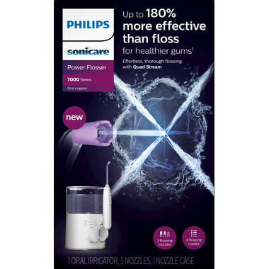 Discover the power of X! The new Philips Sonicare Power Flosser creates an X-shaped stream of water that reaches deep between teeth for a gentle, thorough clean. This X-shaped water stream, known as Quad-Stream technology, covers more surface area for a faster, deeper clean versus manual floss.