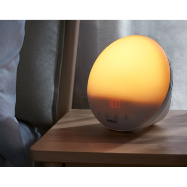 Philips Wake-Up Light Alarm Clock with Colored Sunrise Simulation and Sunset Fading Night Light, White, HF3520/60
