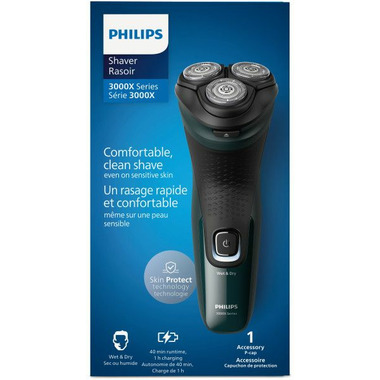 Philips Shaver 3000X Series Wet & Dry Electric Shaver gives you a comfortable, clean shave and good value. 27 self-sharpening PowerCut Blades, wet and dry use, and a pop-up trimmer make the shaver easy to use and always reliable.