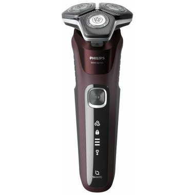 Includes: 1x Shaver Series 5000, Integrated pop-up trimmer, Cleaning brush, Soft pouch, Protective cap and USB-A cable.