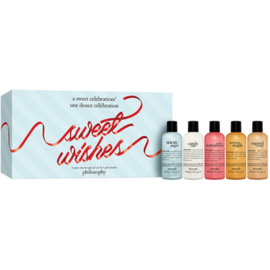 Celebrate the season of joy and surprises, make sweet wishes and indulge in the sweet scents floating in the air with this limited-edition philosophy 5-piece shower gel holiday gift set.