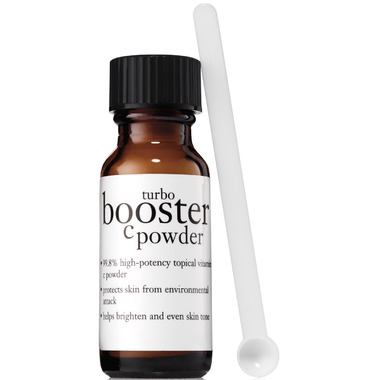 Give skin a daily boost of Vitamin C with the Philosophy Turbo Booster C Powder.  Turbo Booster C Powder is a 99.8% topical vitamin C powder that acts as an antioxidant to help protect skin against environmental attack and prevent premature signs of aging.  It can be mixed fresh daily with your favorite water-based serum or moisturizer for an instant antioxidant boost.