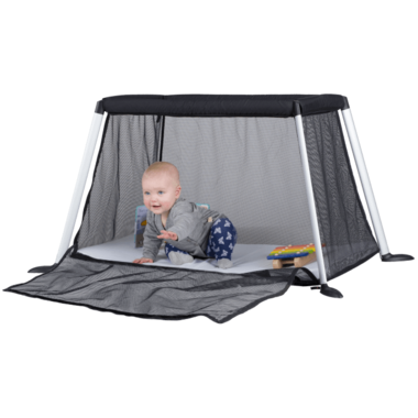 Built for optimal lightness & strength, traveller is a breeze to assemble & is super adaptable for indoors & outdoors, with its unique zipped side which you can open as a fun playpen or close up for sleep.The traveller has an additional mesh top accessory available for shade.