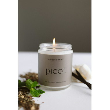 Picot's Tobacco Mint scent is bright, fresh, creamy, and mysterious. It has notes of vanilla, peach, tobacco leaves, mint, and amber. Its sunshine, ripe peaches, and warm salty skin. It smells like a late summer evening. Sweet, sensual, and a little nostalgic. There's a quiet confidence in it that took us nearly a decade to find.