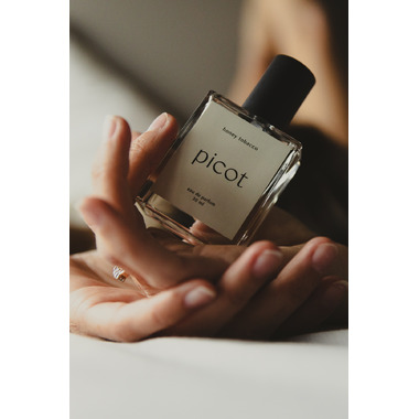 Picot's Honey Tobacco eau de parfum is warm, evocative, and curious. Sweetness grounded with an earthy, musky base that is reminiscent of buttery vanilla, tonka bean, peppercorn, and dusk. There's a warmth to it that is sophisticated, subtle, and curious. Their signature blend of rich honey and earthy tobacco has an allure that lasts from morning to night.
