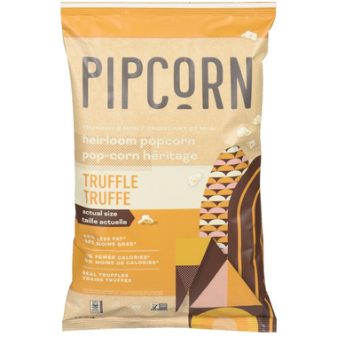 Pipcorn Heirloom Popcorn Crunchy & Mini Truffle made with only 3 simple ingredients, 40% less fat and 20% fewer calories per serving compared to the leading sea salt popcorn.