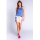 Soft cotton-blend fleece lounge short in modern length with comfy pockets. Two-tone tie-dye pattern on sides make a statement item.