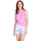 A dreamy watercolour dyed lounge short in blue-violet hues. Simple tie-waist short in peachy jersey is comfy and soft.