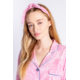 PJ set in cotton-modal jersey in light pink floral print. Comes with matching headband. Button-front top & straight leg pant.
