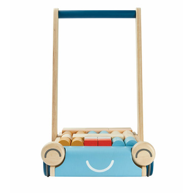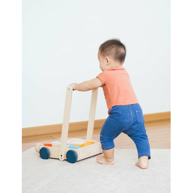 Cruise through early developmental stages with the PlanToys Baby Walker! This toy can help develop fine and gross motor skills while encouraging children to walk on their own two feet. The handle is adjustable to fit various heights. Plus, this Baby Walker comes with 13 colored and 11 natural wooden blocks so children can create and build things with their imagination. Sustainably made in Thailand with chemical-free rubberwood trees, formaldehyde-free glues, organic pigments, and water based dyes.