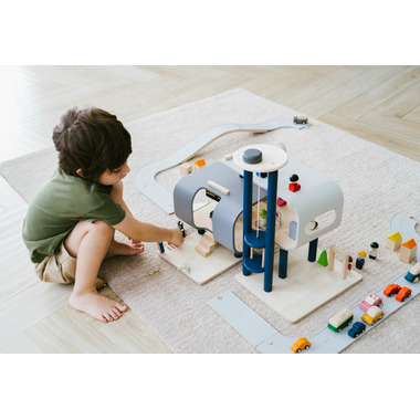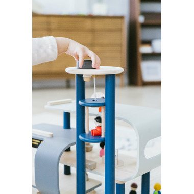 This Central Station can be connected to any other PlanToys transportation system. The lower building can be rotated to adjust the layout of building. Build a rail system for your trains, land your helicopter on the rooftop's helipad, park your toy vehicles in the parking lot, bring people and animals up through the elevator, and so much more! This play set really stimulates a child's imagination and invites them to explore transportation play freely. Nearly all areas of development are triggered here — particularly hand-eye coordination, problem solving, concentration ability, fine motor skills and creative thinking. Sustainably made in Thailand with chemical-free rubberwood trees, formaldehyde-free glues, organic pigments, and water based dyes.