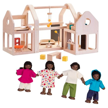 All doll heads and bodies are made of solid wood. Arms and legs are wire that can be easily shaped. Compatible with PlanToys® dollhouses. Helps develop Imagination, Coordination, Social, and Fine Motor skills. Ages 3+.