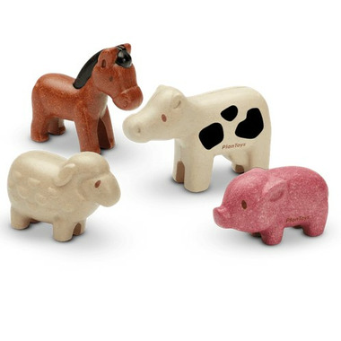 Create a countryside scene at home with these cute wooden animals! This set comes with a pig, sheep, cow and horse.