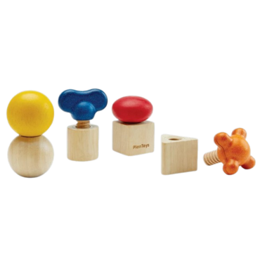 Children can create a variety of small structures with these wooden nuts and bolts. Complete with 4 different bolts paired with geometric nuts, kids can incorporate the pieces into other construction or mechanical play environments. While they grab, twist and sort the pieces, hand-eye coordination and fine motor skills are stimulated.