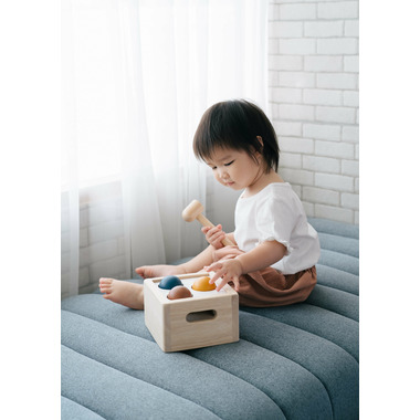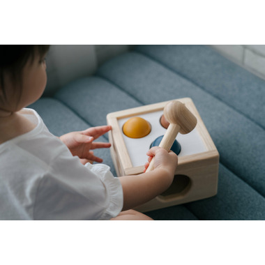 Great fun for children to pound the balls until they drop and slide out. Sustainably made in Thailand with chemical-free rubberwood trees, formaldehyde-free glues, organic pigments, and water based dyes.