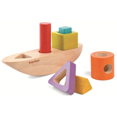 This colourful Plan Toys Sorting Boat teaches shapes, colours and sequencing. Includes boat base and 6 geometric shapes.