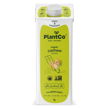 PlantCo Organic Cashew Beverage is 100% Natural. Made with 2 simple ingredients.