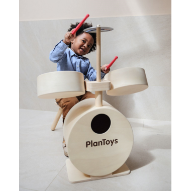 Join a rock band and take center stage with the PlanToys Drum Set! This musical playset is the first one in the world to be entirely made out of wood and comes with the ability to produce a variety of sounds and rhythms. Complete with a snare and bass drum, pedal, cymbal and pair of rubber drum sticks, children can strengthen their hand-eye coordination, motor skills, ability to concentrate, auditory acuity and more.