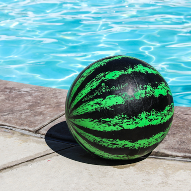 Watermelon Ball is a fun unique swimming pool game combining components of football, basketball, and rugby in the water. The ball used to play Watermelon Ball is neutrally buoyant, which allows the ball to be passed up to 10 feet and dribbled like a basketball under the water. See How to Play video below.