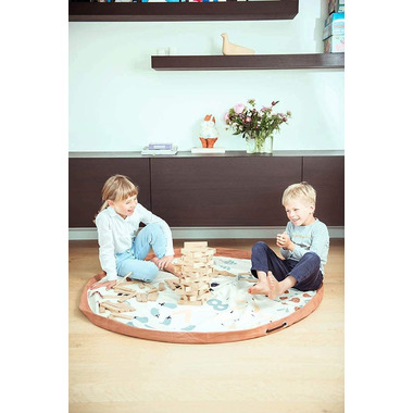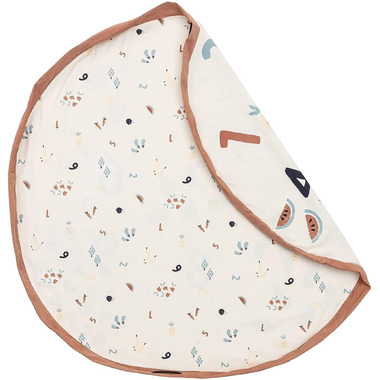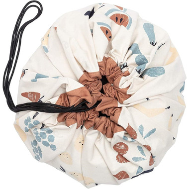 An educational play and storage bag with numbers, fruits and vegetables. What's your favourite number? How about food? Count up to 9 with this pretty earth colored play mat and storage bag which features a collection of delicious fruit and vegetables including bananas, pineapples and watermelons. A great way to encourage kids to learn numbers as well and play safely both on their own or with friends and family. The large generous mat with double-sided design featuring two colourful environments in which to rest or explore with their favourite toys. When you're done simply tidy everything together. Ideal for the garden, the bedroom, beach, park or school this bag is perfect for everyone and makes learning accessible and fun for boys and girls of all ages.