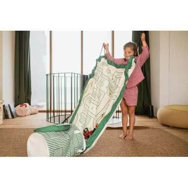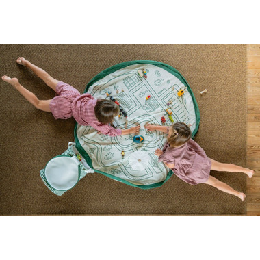 The soo roadmap by play&go is a smart 2-in-1 solution for modern families. Spread it out as a spacious playmat where kids can enjoy hours of imaginative play on the fun roadmap print. When playtime is over, simply pull the strings and it transforms into a practical storage basket that keeps everything neatly in place. Designed as a single integrated piece, the playmat is securely stitched to the opening of the basket and the lid is attached no loose parts, no fuss. Lightweight and easy to move around, the soo roadmap by play&go makes tidying up quick and simple while adding a playful touch to your home.
