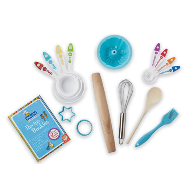 The simple craft of baking can be as easy as pie with the right tools and recipes! Equip the kids in your life to learn real baking skills as they whip up a batch of “top banana” muffins or sugar cookies with creamy frosting using pastry chef-quality tools including a French rolling pin, soft-touch silicone basting brush, metal whisk and more. Colour-coded measuring cups and spoons align with the illustrated recipe cards, making the baking process a piece of cake!