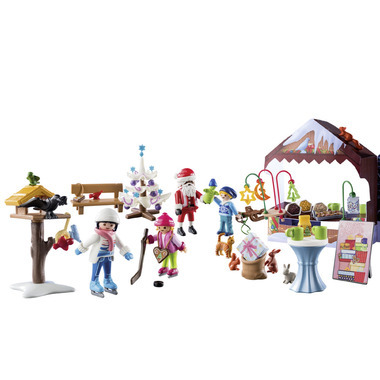 With the PLAYMOBIL Advent Calendar 'Trip to the Christmas Market,' the Advent season flies by. Behind each door, 24 loving PLAYMOBIL surprises await, creating a complete Christmas market in the children's room by Christmas Eve. This special Advent calendar includes everything to recreate a visit to the Christkindlesmarkt at home: a booth with sweet treats, a Christmas tree, a standing table with mugs, a sack of gifts, a Santa Claus, and 3 other PLAYMOBIL figures. The beloved PLAYMOBIL Advent calendars have been sweetening the wait for Christmas for many years, all without chocolate. After the holiday, figures and accessories can easily be integrated into existing PLAYMOBIL worlds for fun adventures all year round!