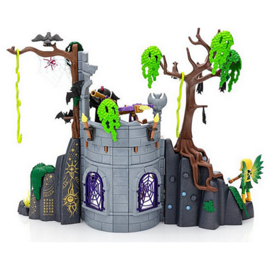 Set includes: two figures, dragon, warthog, various bats, giant spider, chandelier, telescope, functioning crossbow, ravens, and other accessories.