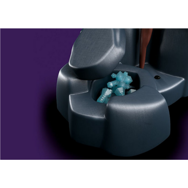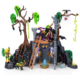 Explore the mysterious Bat Fairy Ruins. With a rock wall illuminated by stolen energy crystals, this is where the Bat Fairies live with their soul animals. Climb the ladder to the viewing platform where you will find a functioning crossbow and telescope to keep an eye out for enemies. There is a comfortable hideout for your soul animal, the dinosaur, behind the rocks. When night falls, the bat fairy can hang upside down from the rotating chandelier as the fire wreath, spider web, and torches glow in the dark.