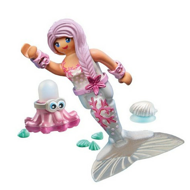 PLAYMOBIL Special Plus play figure mermaid with water spray octopus. With decorative shell to attach to smooth surfaces (incl. suction cups). Recommended for ages 4 and up.