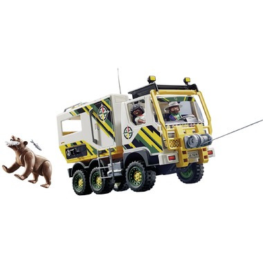 Explore the wild with the Outdoor Expedition Truck. This versatile truck has everything the researchers need to observe the animals in their natural habitats. Quickly set up your camera on the tripod to catch the bear drinking from the water. Remove the roof to access the inside of the truck, where you'll find a kitchen perfect for making hot meals and two sleeping spaces for when the sun sets on your adventure.