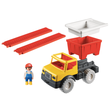 Haul sand with the Playmobil Dump Truck. The truck bed can be removed and used as a bucket and sieve for playtime fun in the sand. The bucket piece is also great for molding the sand into small buildings! You can also use the removable ramps to help drive the truck over soft sand. Perfect for play either at the beach or in the sandbox - the possibilities are endless! Set also includes one figure and truck with removable bucket, sieve, and ramps. Recommended for ages two years and up.