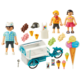 - One adult figure, two child figures, ice cream cart, ice cream flavors, waffle cones, sign, ice cream scoop, and other accessories.