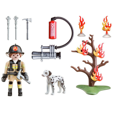 | Set includes figure, dalmatian dog, fire extinguisher, fire and other accessories. |