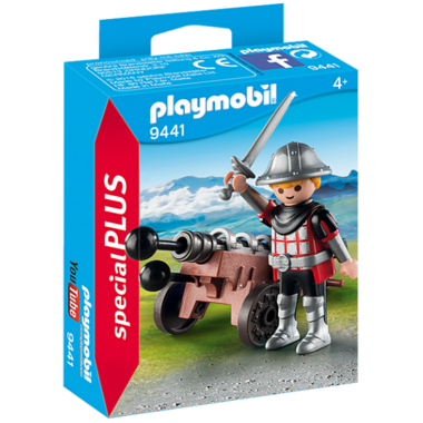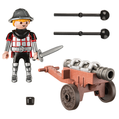 Defend the kingdom with the Knight with Cannon. The functioning cannon can fire the two included cannonballs. Play with this set on its own or combine it with any other PLAYMOBIL set.