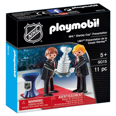 Unveil the most prestigious hockey award with the Playmobil NHL® Stanley Cup Presentation. Hand the Cup to the winning team! Set includes two figures with white gloves, Stanley Cup, and presentation table. Combine multiple sets for added fun!
