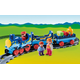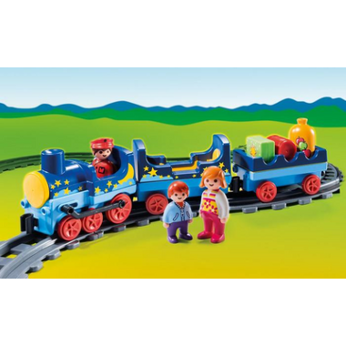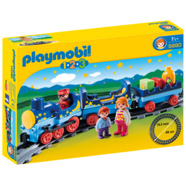 Playset includes three figures, three-car train, tracks, luggage and supplies. All train cars can be combined together with the hitch. With its bright and colourful design, and large and rounded pieces, this PLAYMOBIL 1.2.3 set is ideal for toddlers. All train cars can be combined together with the hitch.
