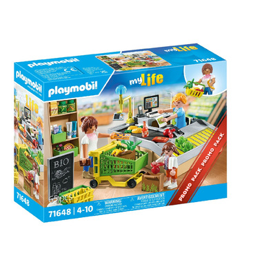 Let's go shopping: In the PLAYMOBIL Organic Supermarket, there's something for everyone's taste! Includes a cash register with conveyor belt, shopping cart, and lots of accessories.
