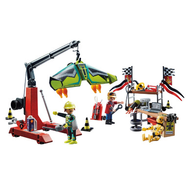 Repair and service the aircrafts and stunt materials at the Air Stunt Show Service Station. Watch as the mechanic works on the wingsuit, attaching flames to the underside of the suit. While the wingsuit pilot tests out the suit to make sure its in working order, the mechanic receives a call to repair another aircraft. The maintenance crane is mobile and can be combined with the set ғMobile Repair Service (70835 - sold separately). Combine with the Air Stunt Show theme (#70831-70836 - sold separately) for even more high-flying fun.